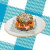 340гр Котлета свино-говяжья, овощной микс, огурец сол., перец Халапеньо, соус Барбекью, микс сыров